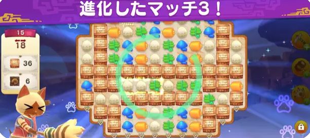 モンスターハンターの世界のかわいいアイルーたちの島を舞台にした3マッチパズルゲームです。