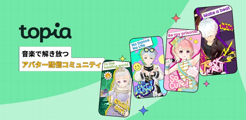 topiaは、顔出しをせずにオリジナルアバターを使ってライブ配信ができるバーチャルカラオケ配信アプリです。